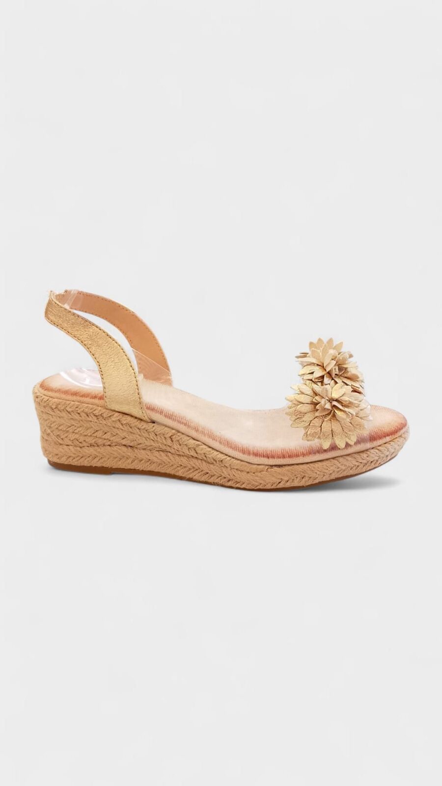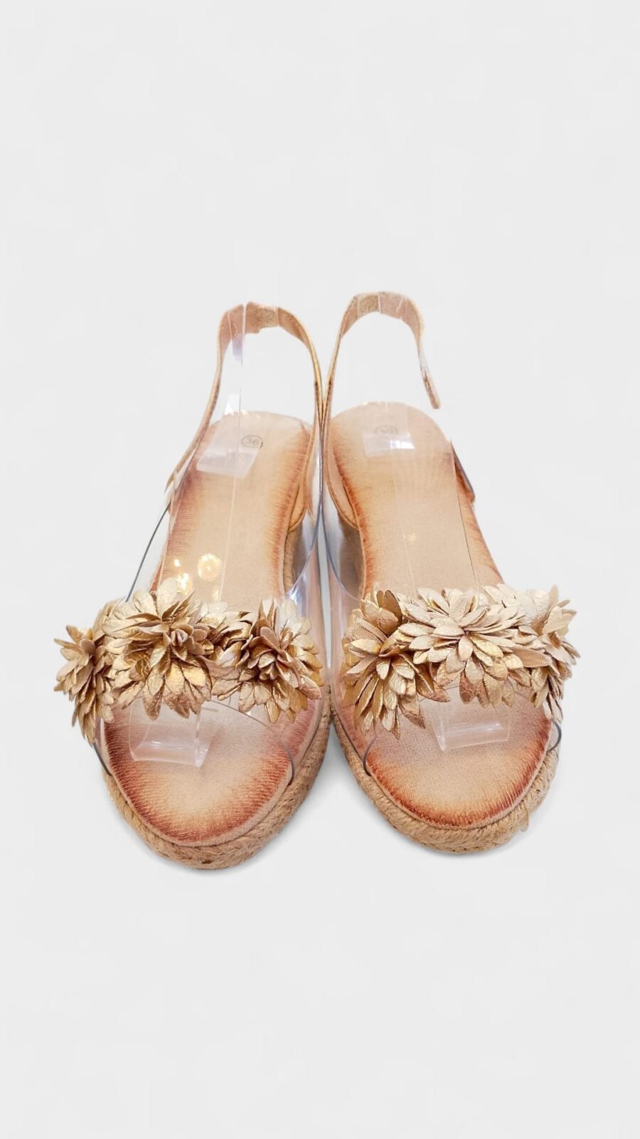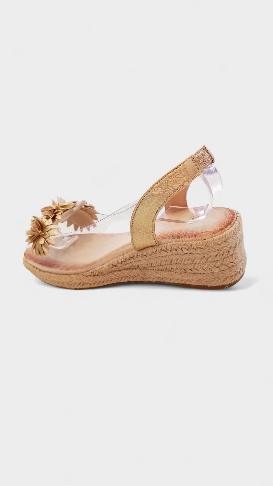 Cuña baja transparente flor dorada